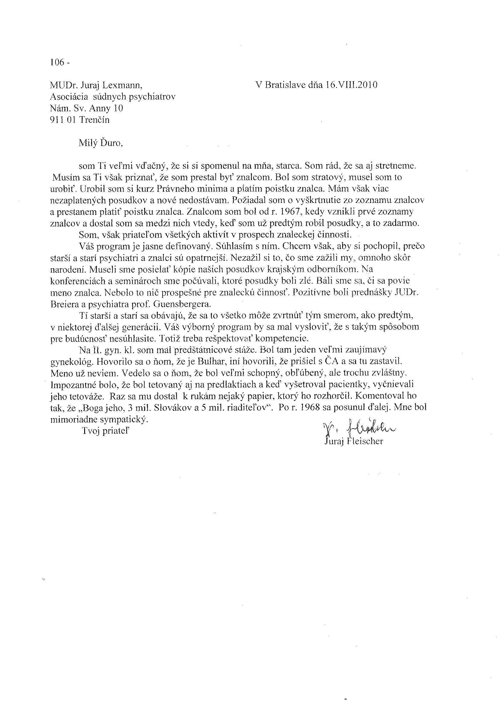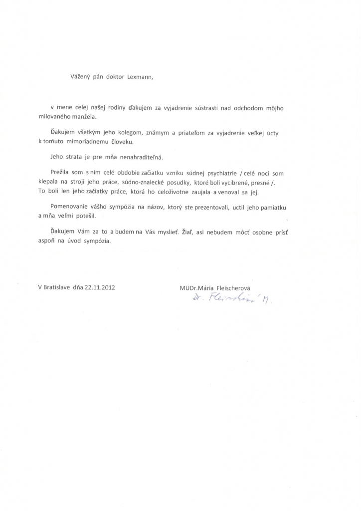 S láskavým súhlasom manželky a tiež rodiny pána docenta Fleischera nesie sympózium jeho meno ako úprimný prejav pocty a vďaky tejto významnej osobnosti československej psychiatrie a súdnej psychiatrie, pretože docent Fleischer bol jednak jedným zo zakladateľov novodobej súdnej psychiatrie na Slovensku, tiež dlhoročným predsedom Sekcie súdnej psychiatrie Slovenskej psychiatrickej spoločnosi, ale bol najmä našim učiteľom.
